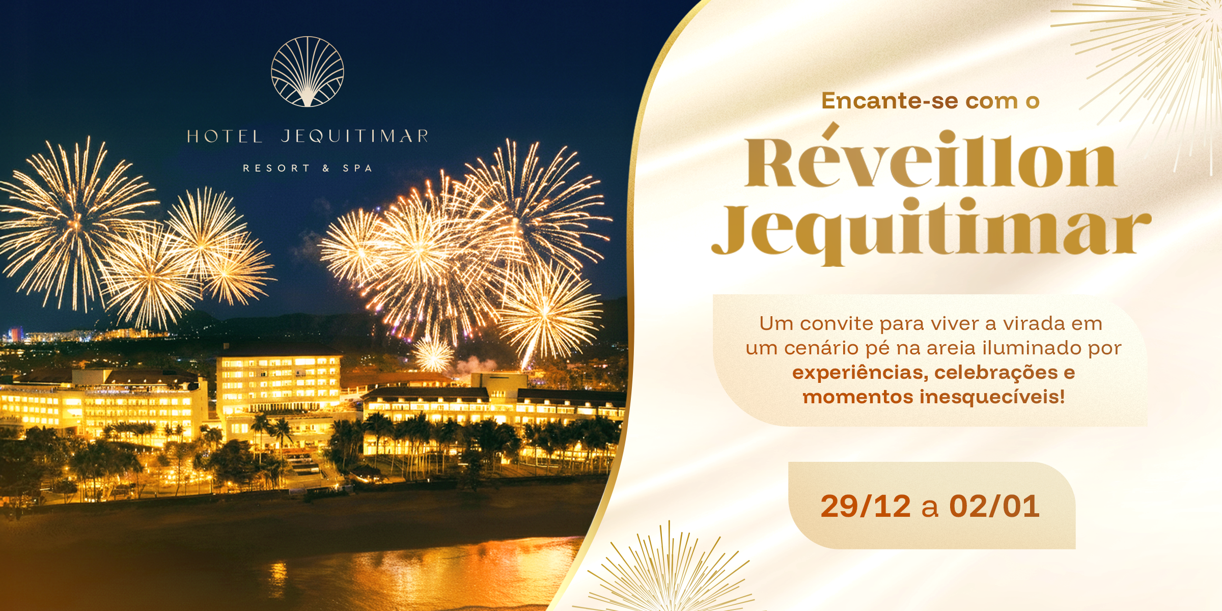 Celebre a chegada de 2026 com alegria e momentos especiais. No único resort pé na areia do litoral paulista, nossos pacotes de Pensão Completa para Réveillon oferecem dias de diversão, descontração e memórias em família. Com música, gastronomia reconhecida, atividades para todas as idades e a tradicional queima de fogos, o Hotel Jequitimar torna cada instante ainda mais especial!